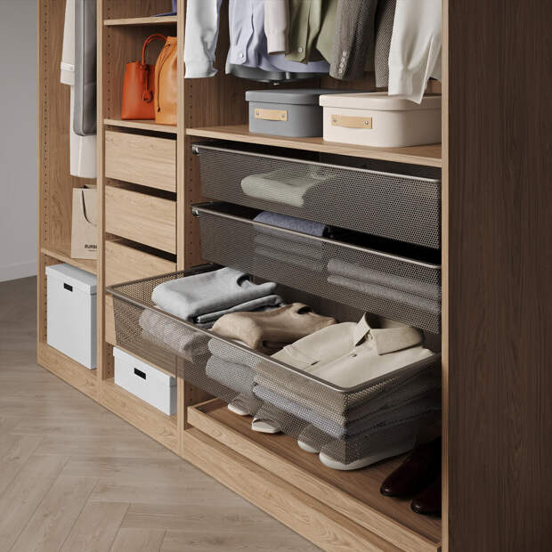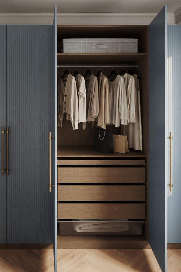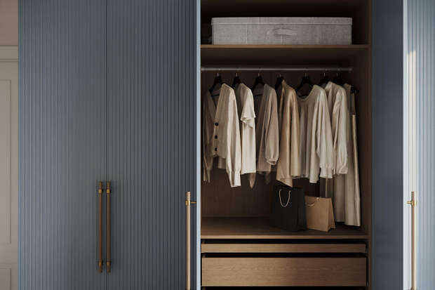 Когда вы живете вдвоем, важно сохранить баланс. Часто девушкам нужно много места для одежды и аксессуаров, а мужчинам – для строгих костюмов и рубашек, которые нельзя мять.