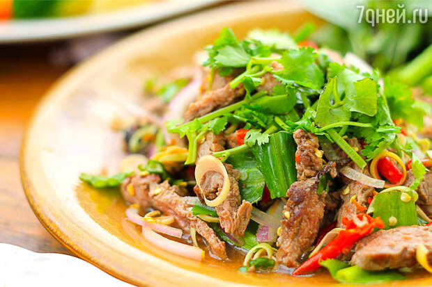 - Заранее обжарьте говядину до полуготовности и нарежьте тонкими ломтиками.