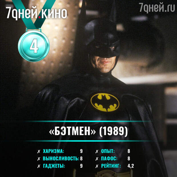 Первый по-настоящему серьёзный Тёмный Рыцарь, каноничный, по-комиксному нуарный и мрачный, как ночь. Майкл Китон оказался настолько впечатляющим Бэтменом, что, как известно, потом долго не мог «отмыться» от этого образа, над чем позже от души посмеялся в ироничном «Бёрдмене» Алехандро Гонсалеса Иньяритту.