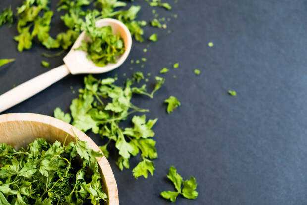 Также петрушку можно высушить: в духовке при невысокой температуре с приоткрытой дверцей, в микроволновке небольшими порциями, в электрической сушилке с режимом для трав или просто на открытом воздухе в темном месте. В таком виде зелень пролежит до следующего года и сохранит аромат и полезные свойства.