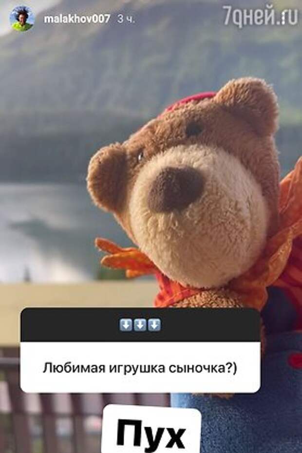 Накануне Малахов продемонстрировал, что его сын вполне реален и имеет свои увлечения. Оказалось, что любимой игрушкой Александра является плюшевый медведь. «Пух», — познакомил ведущий своих подписчиков в Инстаграме с любимцем своего сына.