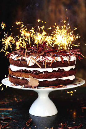 положите их друг на друга. Соскребите большим ножом немного шоколадной стружки и посыпьте ею торт. При желании украсьте его свечами.