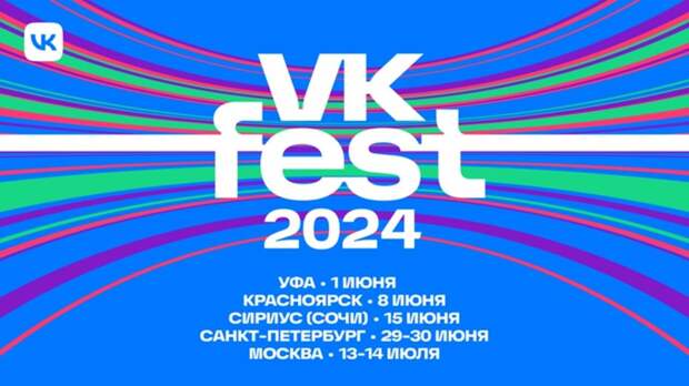 В 2024 году VK Fest пройдёт с 1 июня по 14 июля. Фестиваль объединит Уфу, Красноярск, Сириус (Сочи), Санкт-Петербург и Москву.