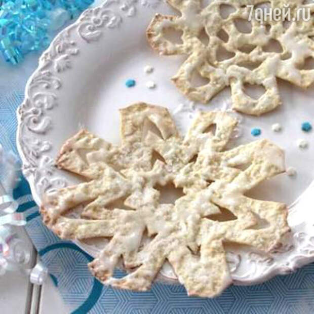 - Смажьте охлажденные снежинки глазурью и при желании украсьте кондитерской посыпкой или цветным сахаром.