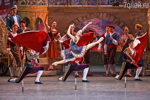 Моим дебютом в кордебалете Большого как раз стала «роль» парня, который ловит гитару, брошенную Базилем — через спину, как букет невесты. Старшие ребята решили подшутить над дебютантом и сказали: «Ты гитару не лови — она должна пролететь мимо твоих рук. Так режиссер задумал...»