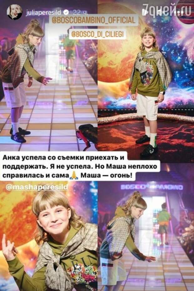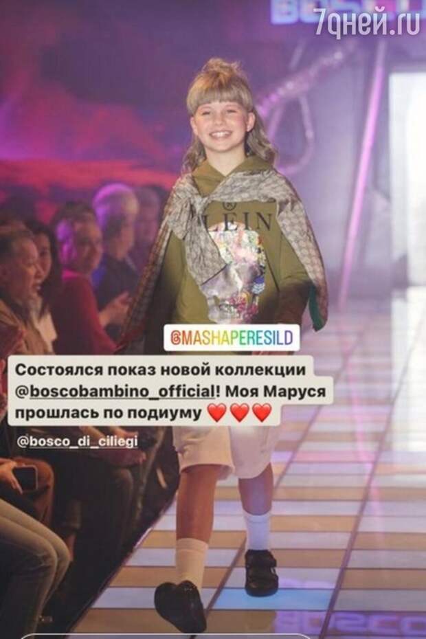 «Состоялся показ новой коллекции. Моя Маруся прошлась по подиуму. Анка успела со съемки приехать и поддержать. Я не успела. Но Маша неплохо справилась и сама. Маша – огонь!»— не стала скрывать восторга Пересильд.