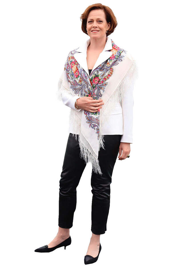 Прохор Шаляпин уже больше десяти лет постоянно использует для своих сценических образов русские народные элементы. В одной «компании» с ним оказалась и Сигурни Уивер. В 2015 году, во время своего визита в Москву, на презентации фильма «Робот по имени Чаппи» актриса накинула на плечи павловопосадский платок.