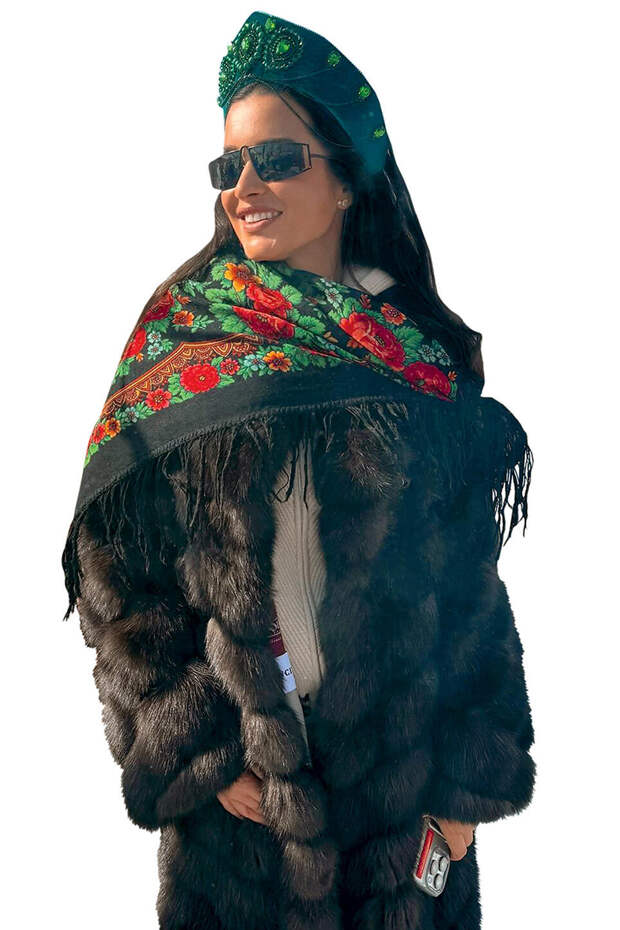Модные звездные образы: носим кокошники с шубами из натурального меха, цветастыми платками и даже солнцезащитными очками.