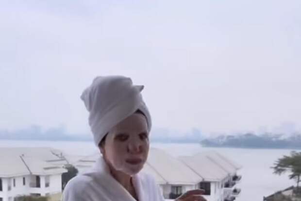 В соцсетях знаменитость порадовала своих поклонников забавным роликом, в котором сначала предстала в гостиничном халате с маской на лице, стоя на балконе с чашкой кофе. А когда в кадре появляется именинный торт, пугается, закрывает рукой камеру и уже через секунду предстает при полном параде.