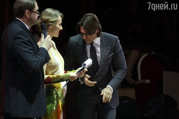 Первой подтвердила этот факт подруга Ксении Ника Белоцерковская, основательница премии. Из «царской ложи» она прокричала: «А Собчак беременна!» Потом на сцену вышел Андрей Малахов. И первым делом встал перед Собчак на колени и поцеловал ее в живот, вызвав, тем самым, бурные овации в зале. «Андрей, вы немного торопитесь!» — произнесла смущенная Ксения. «Плохие вести из царской ложи не доносятся!» — парировал Андрей.