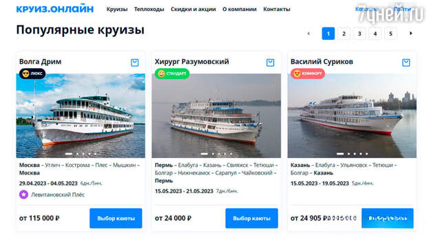 Чтобы выбрать лучшее предложение на сайте продавца водных туров, можно использовать фильтры для поиска по направлениям, датам, количеству путешественников и дней отдыха, а также по классу теплохода. Есть возможность сразу просмотреть свободные каюты, программу экскурсий, фотографии и отзывы. При этом менеджеры компании постоянно находятся на связи и готовы помочь по любому возникшему вопросу.