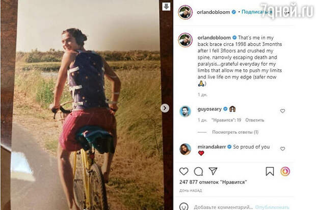 Блум вспомнил о тех трагических для себя событиях, поделившись в своем архивным снимком, на котором едет на велосипеде в стягивающем его торс корсете.
