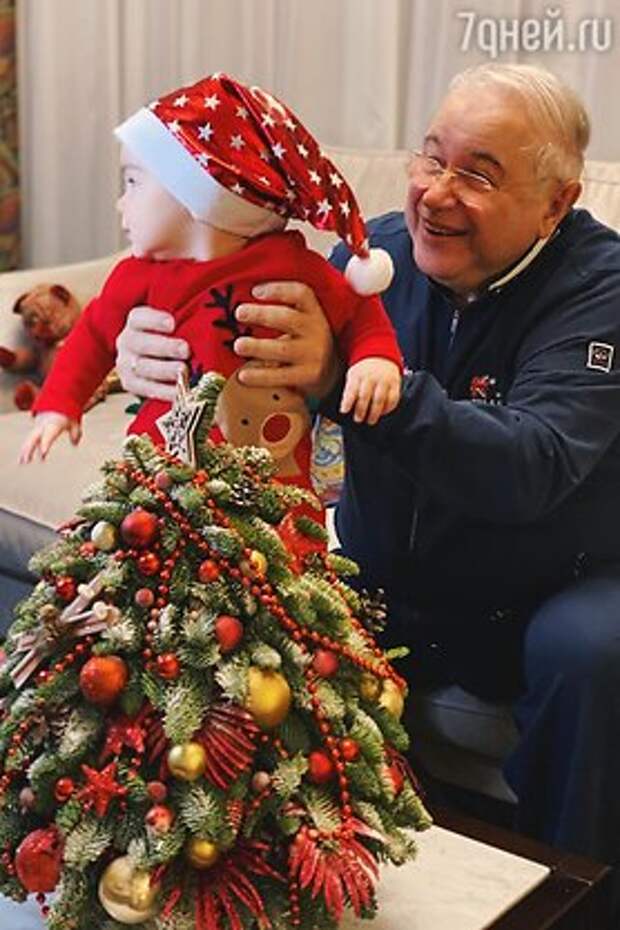 75-летний юморист Евгений Петросян поделился в Instagram фото с малолетним сыном Ваганом. Снимок сделан в новогоднем стиле рядом с наряженной елкой, а девятимесячный карапуз, которого артист держит на руках, наряжен в праздничный красный свитер с оленем и колпак с помпоном.