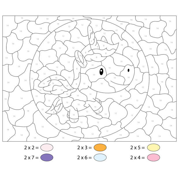 Распечатайте листы с раскрасками и объясните ребенку правила. То, как он использует цвета, конечно же, будет зависеть от расчетов и понимания концепции умножения.