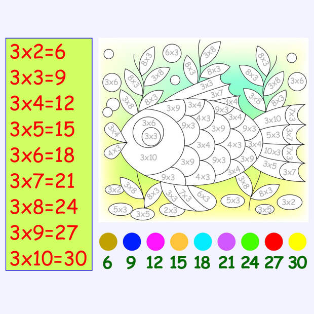 Лиана предлагает объединить творчество с изучением таблицы умножения! Как? С помощью раскрасок по номерам!