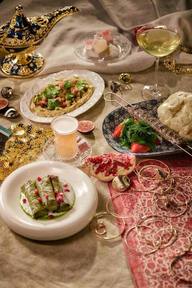 Совместно разработанное меню погружает в атмосферу «Тысячи и одной ночи» с помощью изысканных ароматов и тонких вкусов восточной кухни. В него вошли следующие позиции: нежная долма в виноградных листьях с зернами граната и соусом мацони, сочный люля-кебаб с узбекскими томатами и свежей зеленью, а также авторский хумус с печеным баклажаном и фисташковой пастой. Особого внимания заслуживают авторские коктейли шеф-бармена сети ресторанов «Дымзавод» Антона Герасимова: «Лампа Аладдина» на джине с жасмином, виноградными нотами и креативной подачей в тематической посуде, а также яркий «Восточный» с ромом, апельсиновым ликером и тропическими акцентами маракуйи.