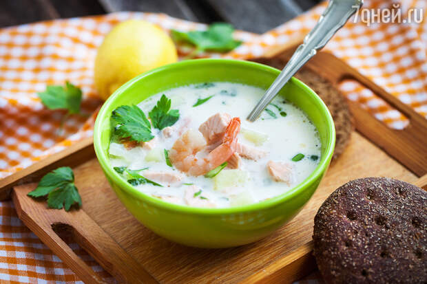 - Добавить в бульон кусочки семги и прогреть содержимое в течение 5 минут.