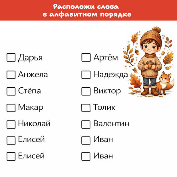 Она не требует специальной подготовки, а эффект дает ощутимый: развивает фонематический слух, тренирует внимание и автоматизирует навык, который пригодится на всю жизнь.Алфавитный порядок остается с нами навсегда, а уверенное владение им делает жизнь чуть удобнее. И к тому же это повод провести время вместе, легко и с пользой.