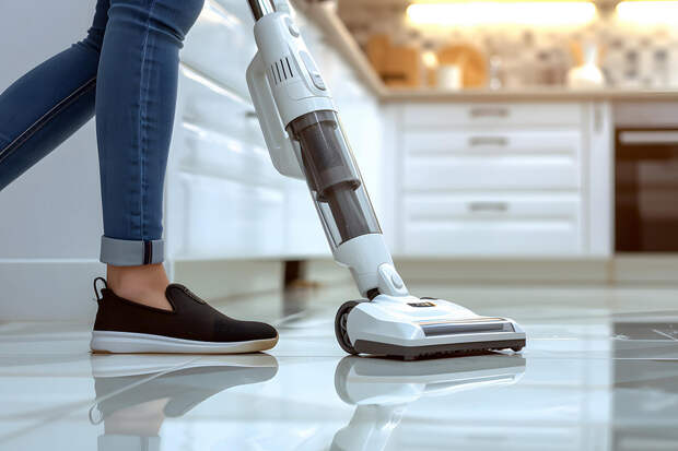 Устройство всасывает мусор, одновременно разбрызгивает чистую воду и собирает грязную в отдельный бак. Справляется с разлитыми жидкостями, засохшими пятнами, шерстью животных и обычной пылью. Подходит для твердых покрытий — ламината, плитки, линолеума, камня. Беспроводная конструкция делает уборку мобильной: легко переходить из комнаты в комнату, убирать под мебелью и в углах. Многие модели оснащены системой самоочистки — после уборки достаточно поставить пылесос на базу, и он сам промоет щетки и внутренние каналы.