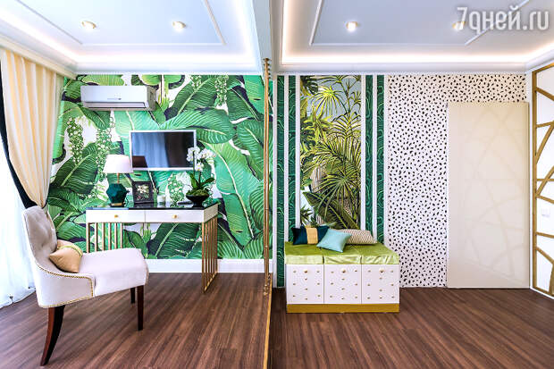 - Идея их интерьера — лето в золотых джунглях, поэтому девушки выбрали яркие и насыщенные цвета и применили довольно экстравагантные приемы.