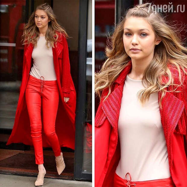 Джиджи постоянно находится под прицелом фоторепортеров. Каждый ее шаг отслеживается, а ее образы чуть ли не каждый день обсуждаются в прессе или в социальных сетях. Что она надела: какую юбку, какую куртку? Интерес вызывают не только выходы в свет, но и обычная одежда манекенщицы в стиле casual. Например, этот комплект от бренда Sally LaPointe, в котором Хадид прошлась по улицам Нью-Йорка. Street look тут же разобрали по косточкам модные критики. Они обратили внимание на то, что модель надела красное плащ-пальто в сочетании с узкими брючками точно такого же цвета. А на ее ногах красовались не сапоги, туфли или кроссовки, а босоножки без пятки. Такой образ тут же был объявлен одним из актуальных трендов сезона.