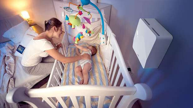 Бризер можно использовать не только для безопасного проветривания, но и для очистки воздуха внутри помещения (режим рециркуляции). Управляется легко в приложении со смартфона, а в этот момент ребенок спит, дышит и развивается. Больше никаких «закрой окно, а то простудится».
