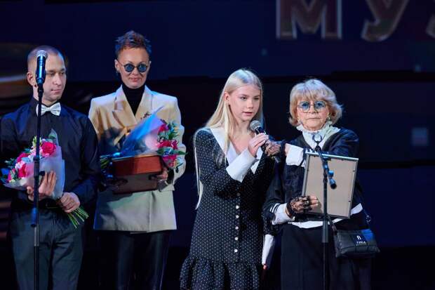 Алла Сурикова вручила приз президента фестиваля «За яркий дебют» режиссеру фильма «Ритмы мечты» Ирине Боровской и актрисе Алисе Меняйкиной.