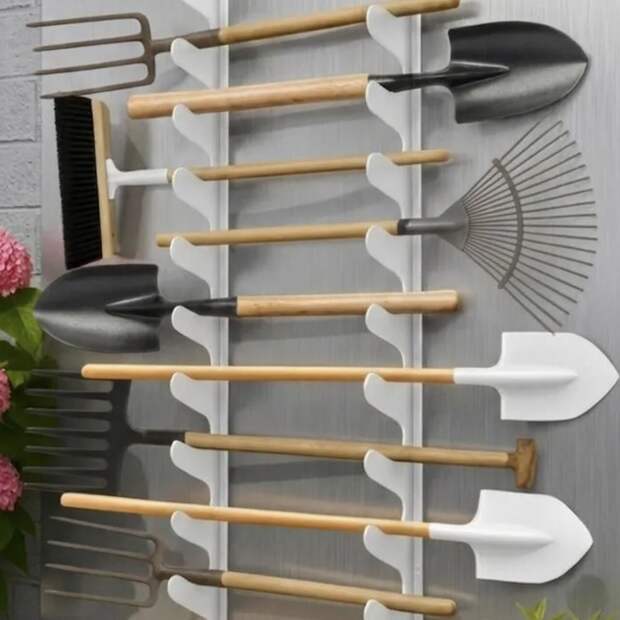 Почему это удобно: все инструменты в одном месте и всегда под рукой. Не нужно бегать за совком или лейкой — достаточно повесить органайзер на забор, стену сарая или носить с собой. Защищает инструменты от ржавчины (если хранить в помещении), продлевает срок службы.