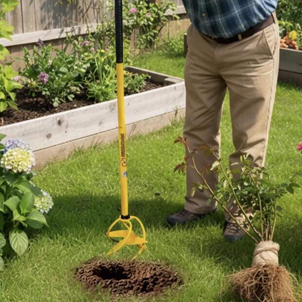 Копать лунки для луковичных, рассады или саженцев лопатой долго и неудобно: глубина получается разная, земля осыпается, а руки устают. Ручной бур для посадки делает одинаковые лунки за секунды: воткнул, провернул, вытащил, и готово.