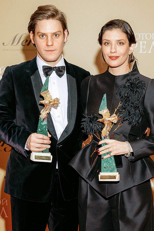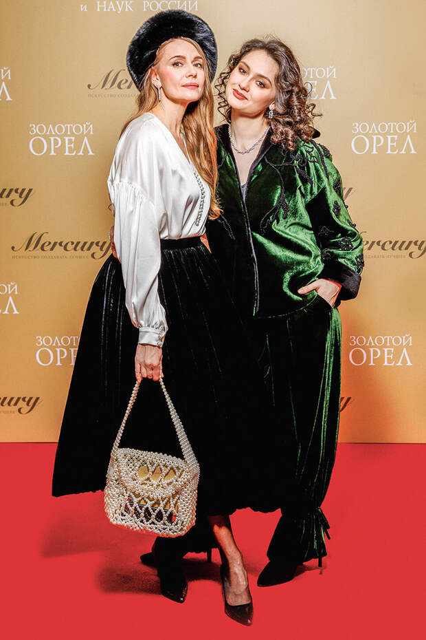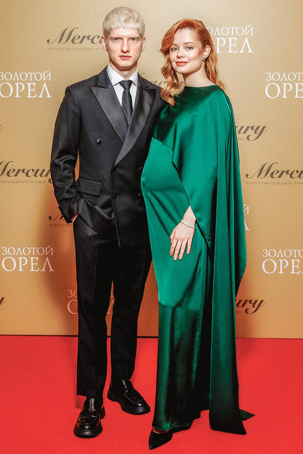 Не забывайте и про обувь. Вере Сотниковой стоило отказаться от черных графичных туфель в пользу чего-то более нейтрального, например бежевых лодочек. Или обуви в цветах ее платья. С таким нарядом отлично бы смотрелась рыжая замша, бархат в винном или терракотовом оттенке. Очень верно подобрала аксессуары Светлана Дружинина. Что меня еще восхищает в Светлане Сергеевне? То, что она всегда носит обувь на каблуке. В отличие от многих девушек и женщин помоложе, которые считают туфли на шпильках невероятно сложным испытанием. Дружинина — настоящий пример того, как надо относиться к своим выходам в свет. И этому у нее стоит поучиться молодому поколению. Она подходит к своему внешнему виду очень ответственно и появляется на красной дорожке при полном параде».«На церемониях вручения премий — кинематографических и музыкальных — все происходит по одному сценарию. Мы видим, что кто-то сильно перестарался, перегрузил свой образ, а кто-то слишком поскромничал. Переборщила у нас на этот раз Юлия Пересильд. А среди самых скромных оказалась Екатерина Гусева. Беременная актриса Мила Ершова, звезда сериала «Аутсорс», пришла с супругом Святославом Рогожаном. Я считаю, что это один из самых удачных парных выходов на церемонии.