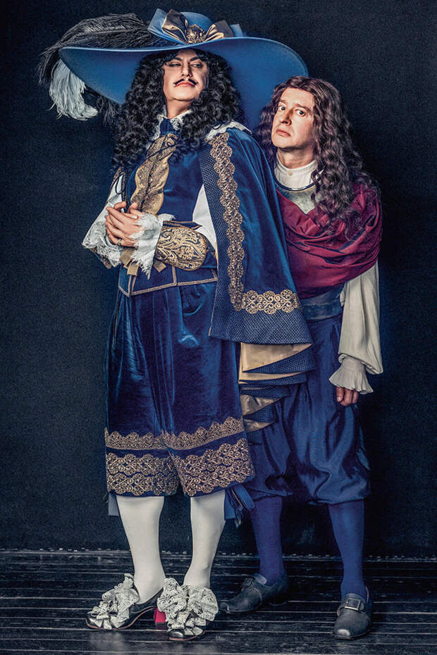 — Как-то в самом начале истории я осторожно спросил Костю: «Скажи, а мы будем играть в трениках или?..» Он мне сказал: «В исторических костюмах». «Ну, это мина замедленного действия, не буду вас пугать», — подумал я про себя. Костюмы мне идут. И они — 95 процентов успеха роли. От костюма зависит, как вы сядете, как вы встанете, как вы пройдете. Я сразу сказал, что, так как Людовик был маленького роста, он ходил на высоких каблуках. Мне сделали туфли, и я ходил весь репетиционный процесс на огромных каблуках, потому что надо привыкнуть. Я торжествовал…