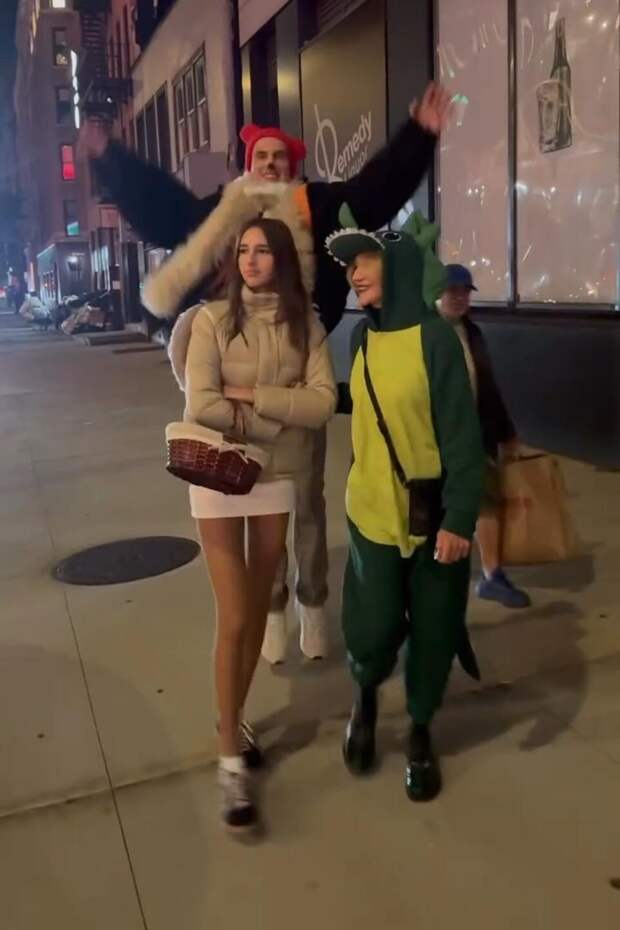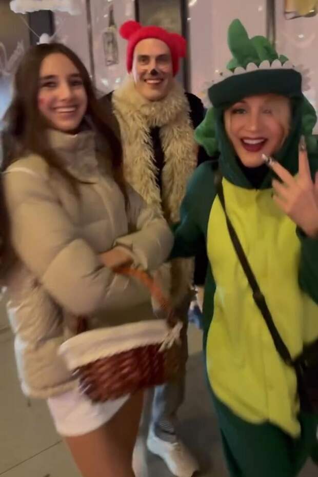 В таком виде артистка прогулялась по улицам Нью-Йорка.Орбакайте надела костюм зеленого динозавра с хвостом и гребнем на спине, а ее дочь решила на одну ночь стать ангелом — примерила ободок с нимбом и маленькие белые крылья. Дольше всех в семье Кристины к празднику готовился ее муж Михаил Земцов. Бизнесмен предстал в образе мышки — накрасил губы алой помадой, нарисовал усы на лице, а также надел головной убор с ушками.