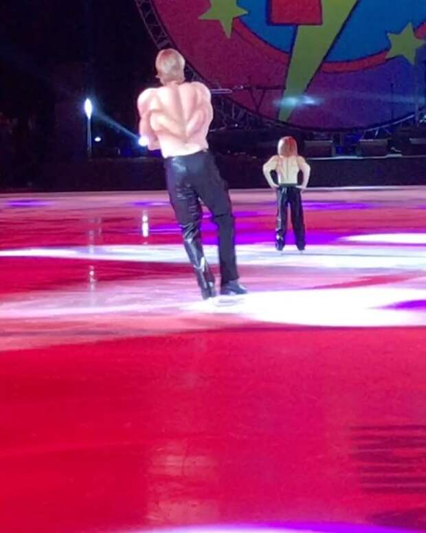 На концерте в Санкт-Петербурге, посвященном дню рождения прославленного олимпийского чемпиона, Плющенко-младший вместе со звездным папой станцевал знаменитый танец на композицию «Sex bomb», который в свое время не только принес отцу заслуженную победу на Олимпиаде, но и стал одним из самых знаковых и узнаваемых номеров Евгения.