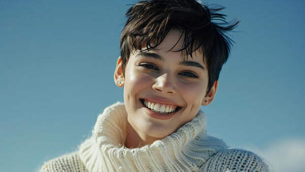 Стрижка, которая выглядит так, будто вы провели час у зеркала, хотя укладка занимает всего 30 секунд. Короткие виски и затылок, удлинённая макушка и челка, текстурированные концы — всё это создаёт естественный объем, который держится без стайлинга.