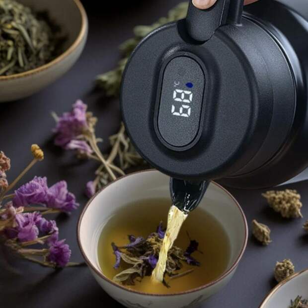 Идеален для правильного заваривания чая, травяных сборов и ягодных напитков. Поддерживает заданную температуру от 40°C до 100°C и медленно томит напиток, сохраняя полезные вещества и вкус: обычно температуру можно задать с точностью до градуса через приложение. Находка для тех, кто ценит качественный чай.