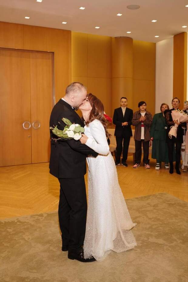 Она уточнила, что пока они расписались в ЗАГСе в кругу самых близких. Для торжества телеведущая выбрала лаконичное платье по фигуре с эффектным декольте и отказалась от фаты и роскошных украшений. Гостей на празднике тоже было немного — только самые близкие и родные. Анфиса уточнила, что они намеренно сделали регистрацию скромной, поскольку в будущем еще организуют пышное торжество.