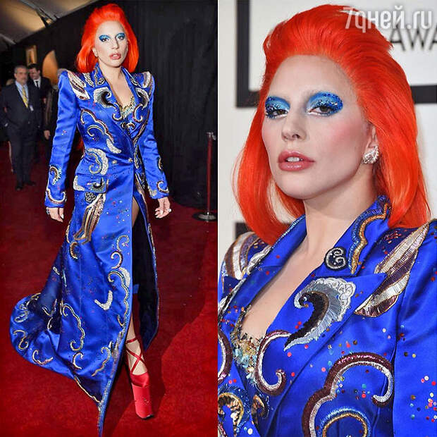 В последнее время певица вроде бы взялась за ум и стала появляться в свете в элегантных туалетах, с нормальными человеческими прическами. Но не тут-то было. На GRAMMY публика снова увидела некое инопланетное существо с яркими волосами и экстравагантным гримом в шелковом платье-халате от Marc Jacobs. Леди Гага снова была в своем репертуаре. Кому-то этот «прикид» певицы даже напомнил недавно ушедшего в мир иной Дэвида Боуи в образе Зигги Стардаста.Популярная и талантливая певица Адель, конечно, не попала в рейтинг «самых худших платьев церемонии». Никаких особых провокаций ее закрытое платье от Givenchy в себе не таило. Но нельзя сказать, что оно сильно украсило звезду. На взгляд многих, такой фасон добавил Адель пару-тройку лишних килограммов. В результате 27-летняя исполнительница выглядела весьма грузной дамой в возрасте.