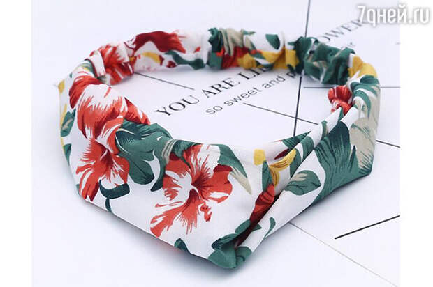 Недорогая, но очень стильная и красивая повязка для волос с цветочным принтом.