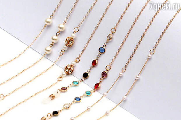 Красивая цепочка с жемчужинами, предназначенная для украшения очков.