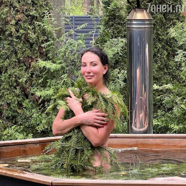 Для приличия она прикрылась хвойными ветками, но оставила фанатам возможность рассмотреть её фигуру.«Когда мне тяжело, я иду в баню и возрождаюсь! Идите в баню»,