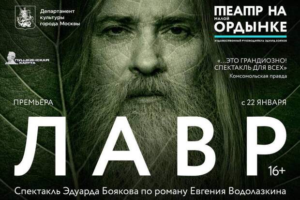 «Лавр» Эдуарда Боякова – сценическая версия известного романа Евгения Водолазкина, лауреата премии «Большая книга» и вошедшего в топ-10 лучших книг о Боге по версии The Guardian.