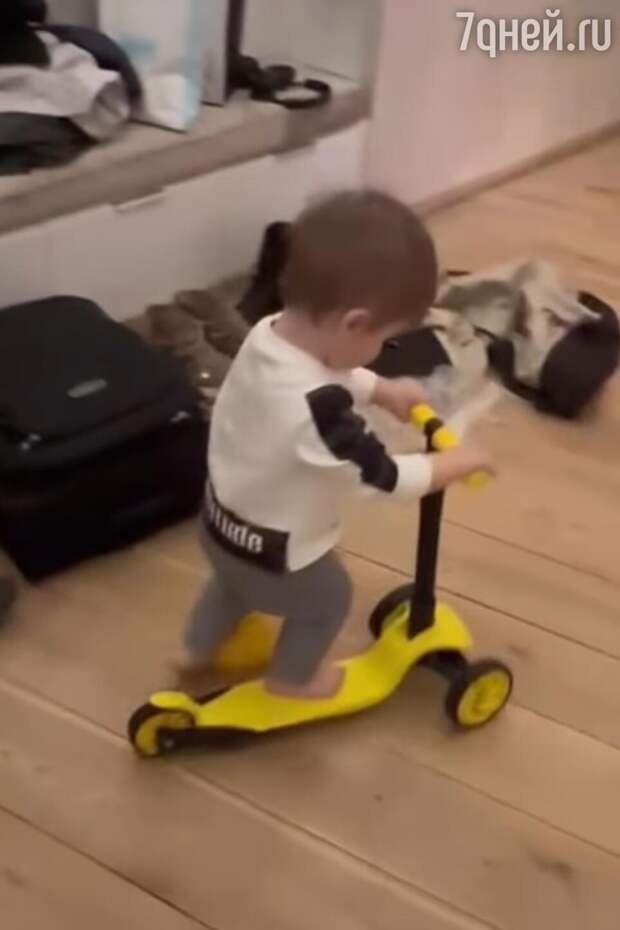 Лиза Арзамасова вернулась из поездки в клинику на берегу Финского залива и обнаружила, что сын за время её отсутствия освоил полезный навык. Лев, которому нет ещё и двух лет, научился кататься на самокате.
