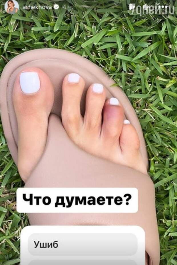 Однако одно неприятное происшествие все же грозит испортить отдых Чеховой - она получила травму и теперь мучается от боли. Телеведущая рассказала, что накануне случайно ударилась и повредила безымянный палец на правой ноге. В итоге он посинел, опух и начал беспокоить ее при ходьбе. К врачу знаменитость пока не обращалась, но заподозрила у себя перелом, а это значит, что ей могут наложить гипс на несколько недель и обязать ее ходить на костылях, чтобы не нагружать конечность, так что о купании в море и дефиле в купальнике можно забыть.