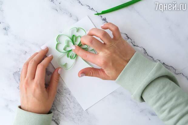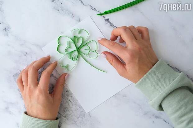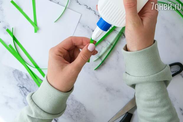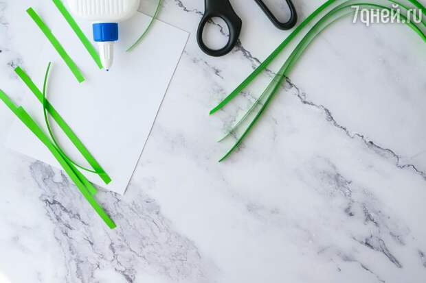 Не забудьте про стебель — сложите бумажную полоску и разместите по примеру с картинки.Статьи по теме: