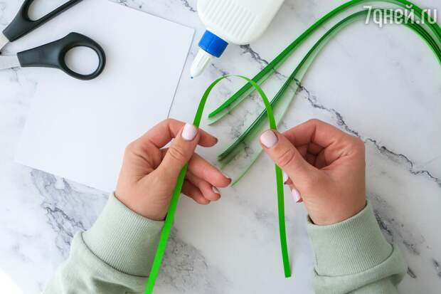 Сверните с помощью палочки одну из бумажных полосок в тугую спираль.