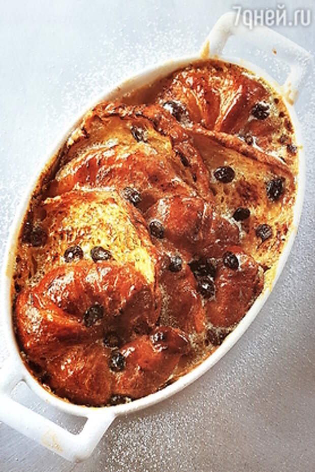 - Добавьте виски, процедите через сито, залейте смесью круассаны и пеките в духовке 20—25 минут, пока пудинг не схватится.