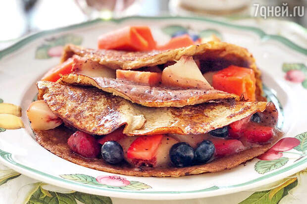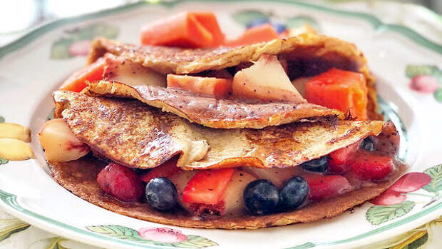 4. Я рекомендую к этим блинчикам сладкую начинку из ягод, персиков и папайи.