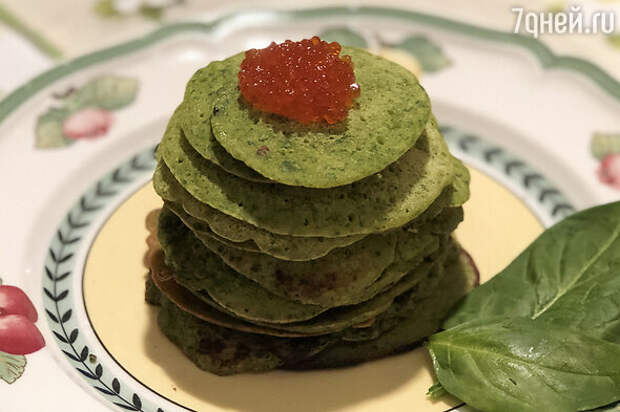 3. Подавать шпинатные блинчики я советую с икрой — так их вкус раскрывается намного ярче.