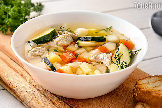Рецепт приготовления вкуснейшего куриного супа с картошкой, помидорами и болгарским перцем.