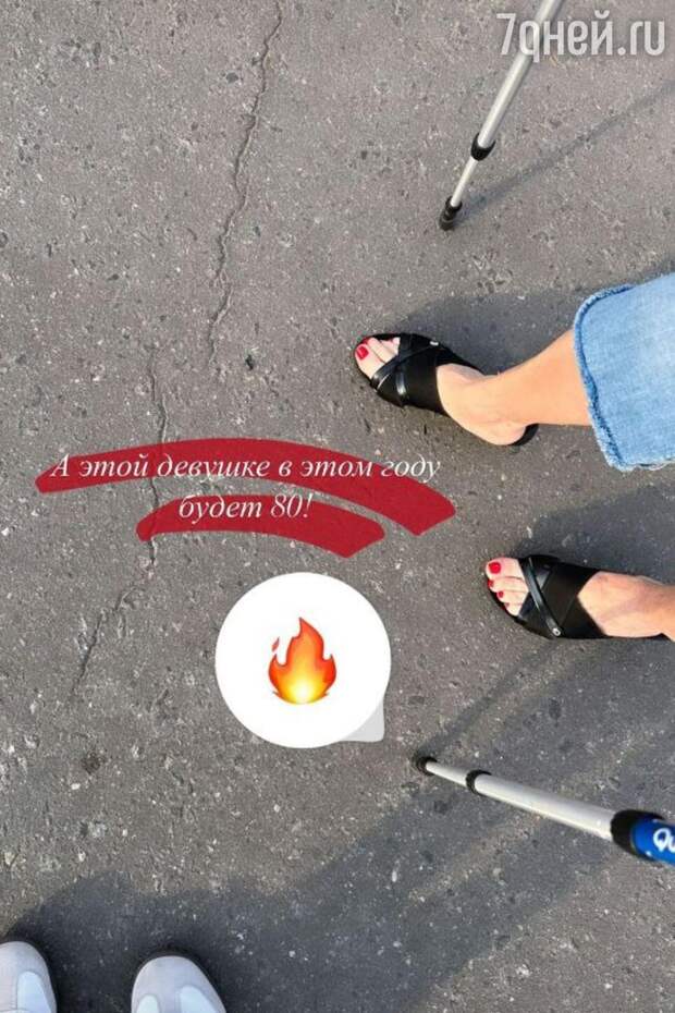 «Это мы вчера ходили на прогулку с бабушкой! Зацените красный педикюр и ходьбу с палками на каблуках»,